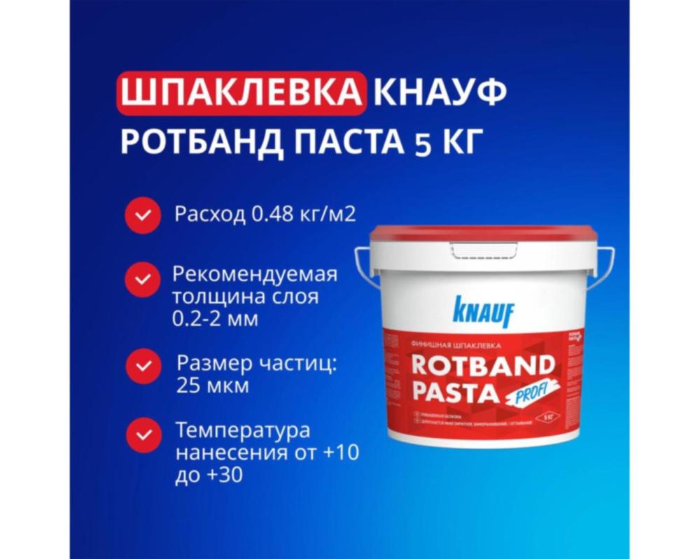 Сделайте поверхность идеально гладкой — финишная шпаклёвка Ротбанд Профи 5 кг поможет добиться профессионального результата без лишних усилий. Это решение для тех, кто хочет подготовить стены к покраске или обоям за считанные часы!