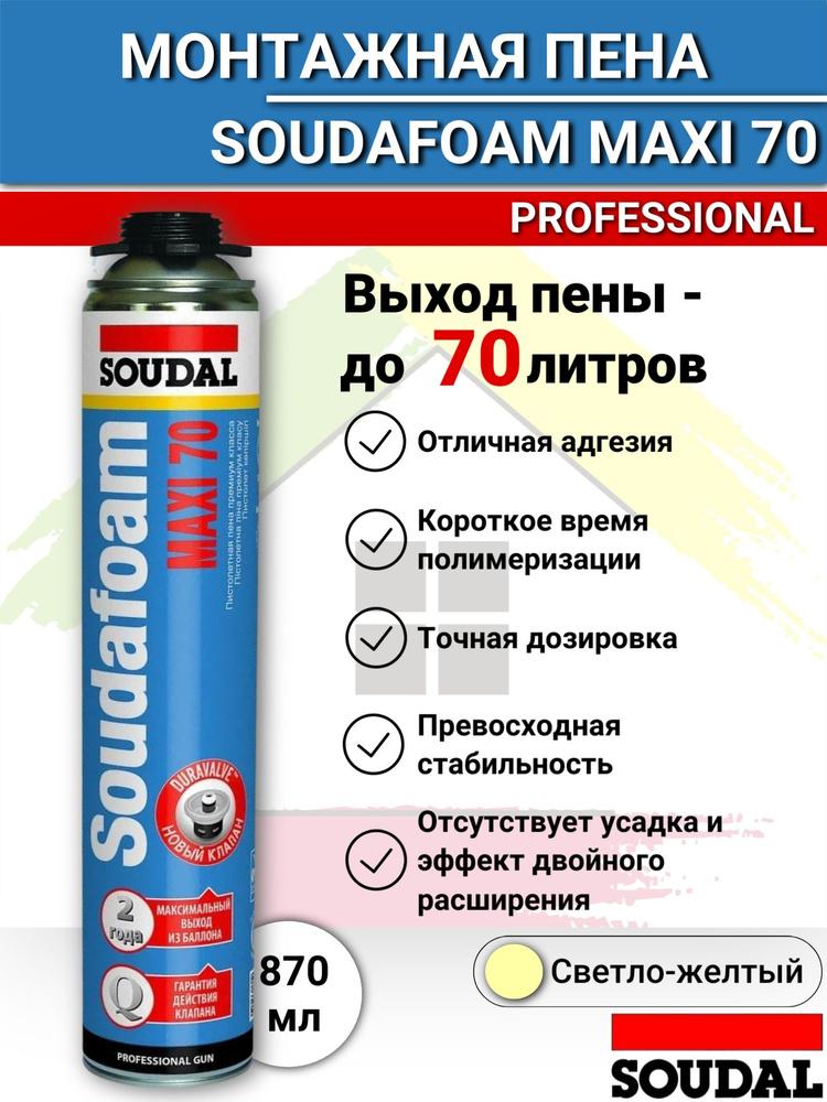 Пена монтажная профессиональная летняя SOUDAL Soudafoam Maxi 70 870 мл — надёжное решение для строительных работ, заказывайте прямо сейчас!!!
