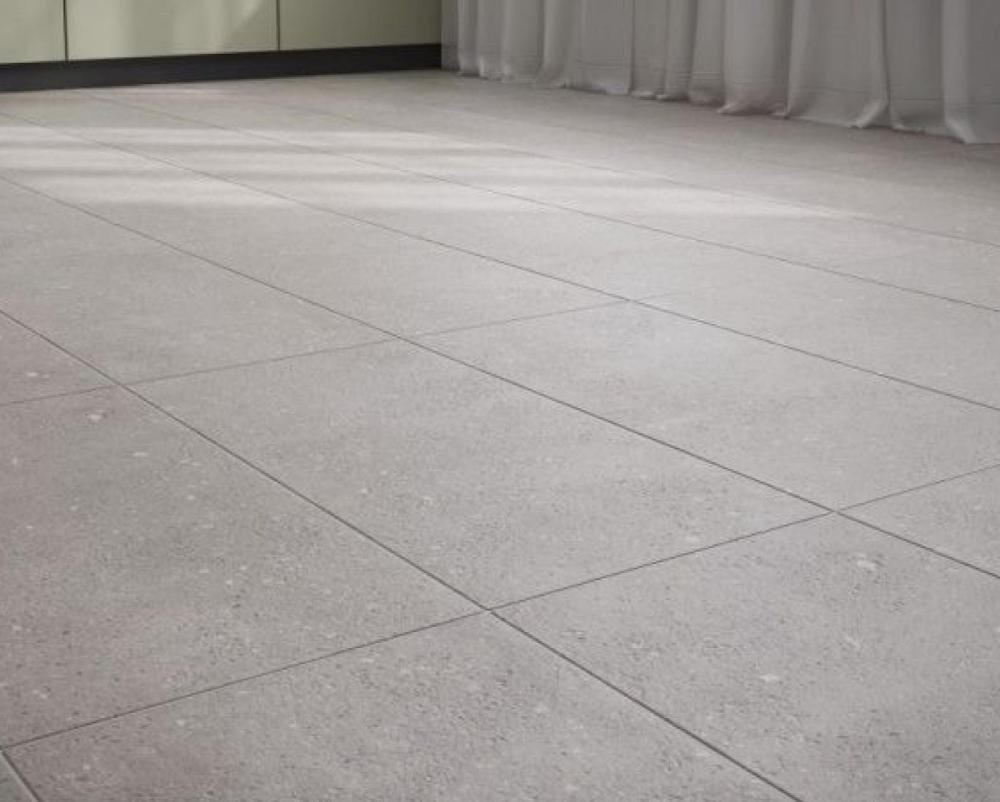Размер плитки — 40×40 см; цвет — серый (имитация гранита); материал — керамика; устойчивость к истиранию — класс PEI III (подходит для помещений с умеренной нагрузкой).